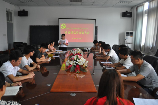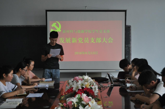 6月13日下午,公司员工党支部全体成员在纳米所会议室召开发展新党员支部大会。列席会议的党员老师有公司党总支书记崔凤巧、12-14级辅导员于笑寒。会议讨论刘富生等4名党员发展对象发展为中共预备党员,均全票通过,员工党支部决定接收其为中共预备党员。